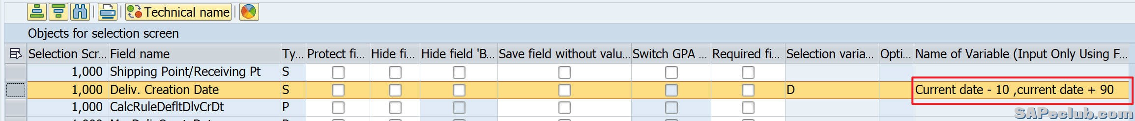 首先是最为常见,后台创建交货单时,交货单的创建日期会有30天的限制,当在销售订单的计划行项目中Delivery date超过30天,就无法在当天的job中创建出交货单。即便是在Variant的时间范围内将限制放宽,如下图所示修改: