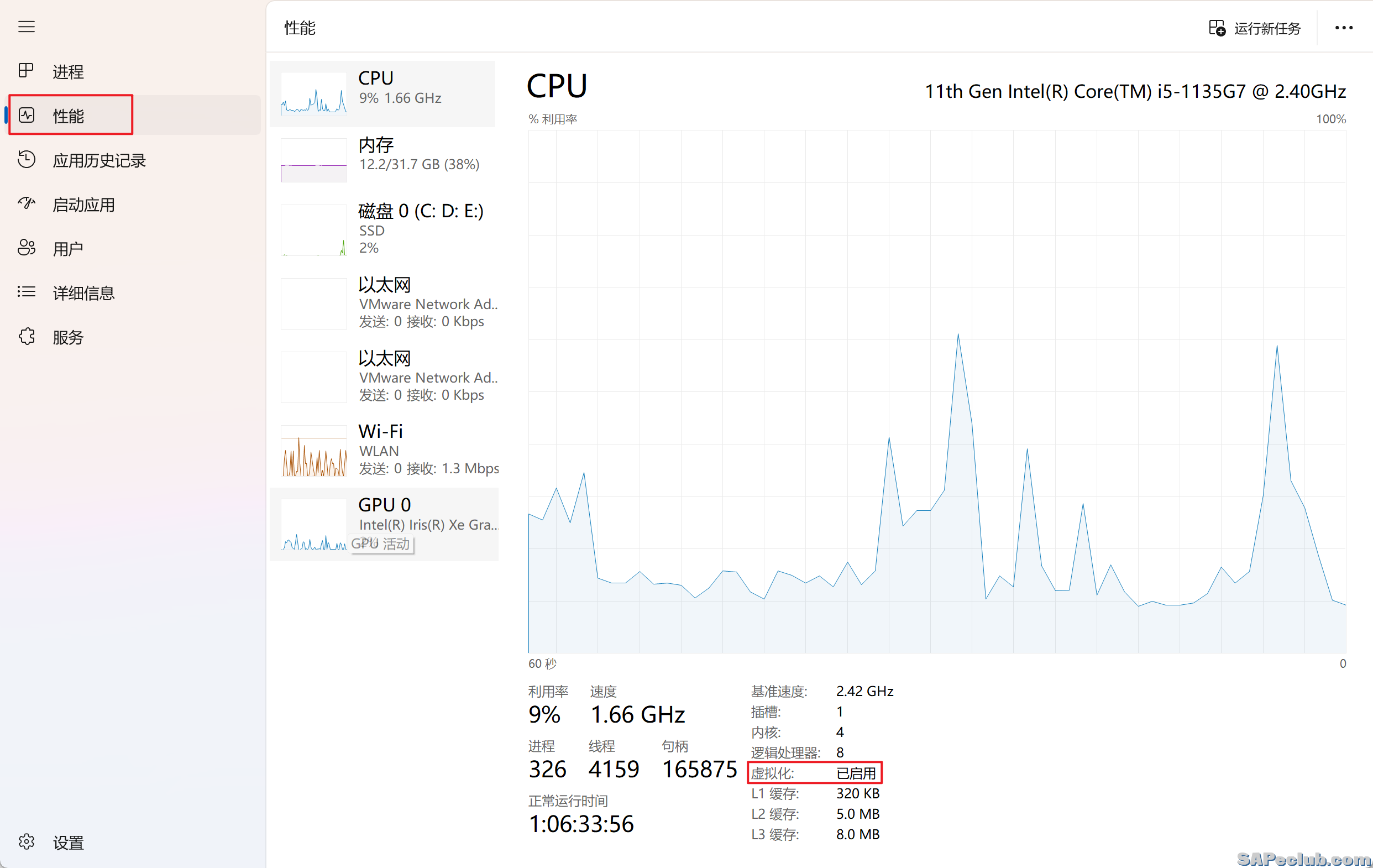 处理器是否开启虚拟化可以直接在“任务管理器--性能--CPU”中查看,如果虚拟化显示“已启用”就说明没问题;如果没启用就需要进主板BIOS中开启,具体如何开启可以通过百度自己的主板型号等方式开启。