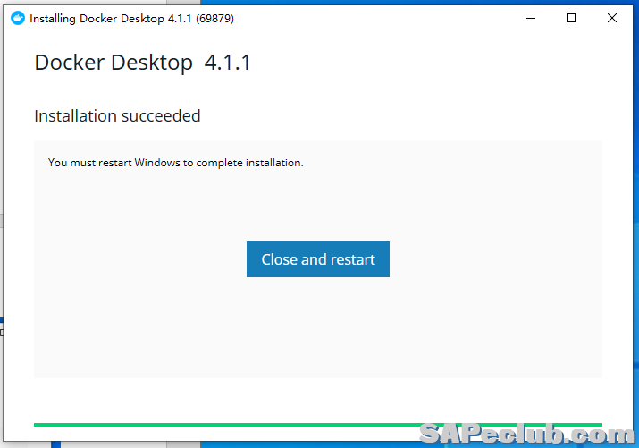 出现下图界面就说明安装完成,点“Close and restart”关闭安装界面并重启系统。