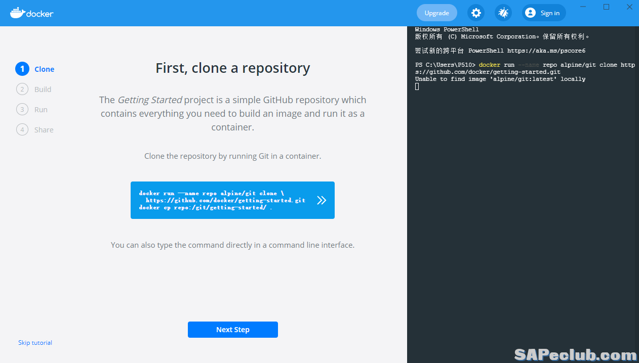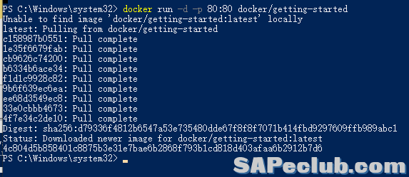 然后我们再在Windows PowerShell中执行部署这个getting-started检验容器: