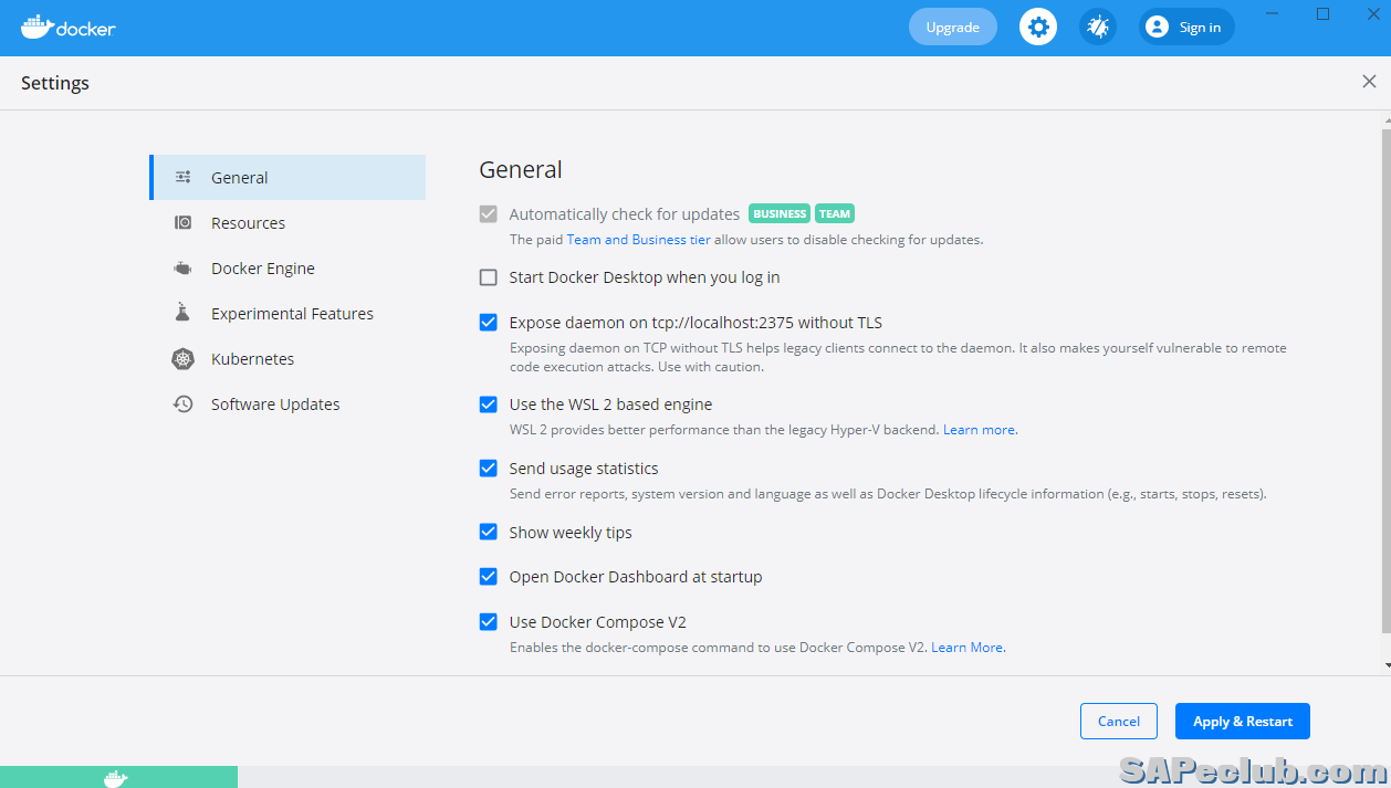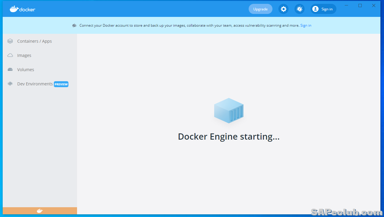 WSL 2安装完成后重启系统,再次打开Docker desktop,进到如下图界面: